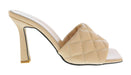 Featuring the truncated square toes, these high heel sandals will have fashion followers falling at your feet. The mules are masterfully crafted from smooth leather with padded quilted adorning the wide strap, making them just as suited to relaxed denim jeans as they are to cocktail-hour finery.