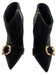 Crafted in rich black velvet, these Dolce & Gabbana ankle boots exude luxury with their quilted texture and ornate gold-tone baroque buckle. A pointed toe and slim stiletto heel add dramatic elegance to this structured silhouette.