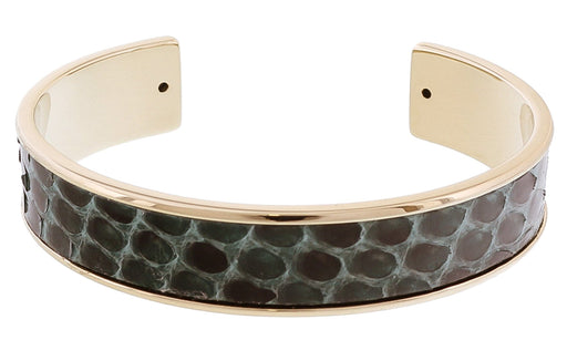 This thin stackable cuff bracelet/bangle by Stamerra features a python inlay wide band with an open back. Luxuriously crafted in Italy from plated ...