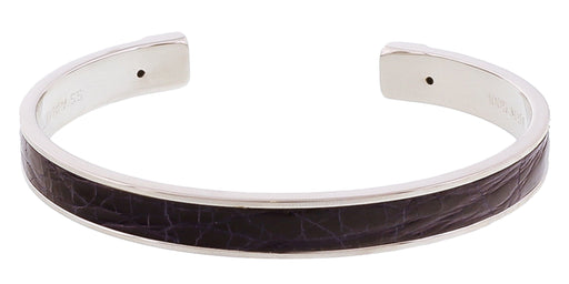 This thin stackable cuff bracelet/bangle by Stamerra features a crocodile inlay wide band with an open back. Luxuriously crafted in Italy from plat...