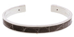This thin stackable cuff bracelet/bangle by Stamerra features a crocodile inlay wide band with an open back. Luxuriously crafted in Italy from plated solid brass ,the simple design makes this bangle versatile ideal for wearing on its own or stacking it with other pieces.