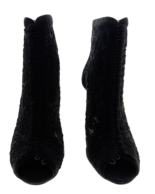 View full detailsDolce & Gabbana Velvet Trimmed Lace Peep-Toe Booties -EU40