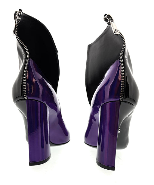 Step into bold sophistication with these Dolce & Gabbana ankle boots featuring glossy black patent leather on one side and a striking purple fi...