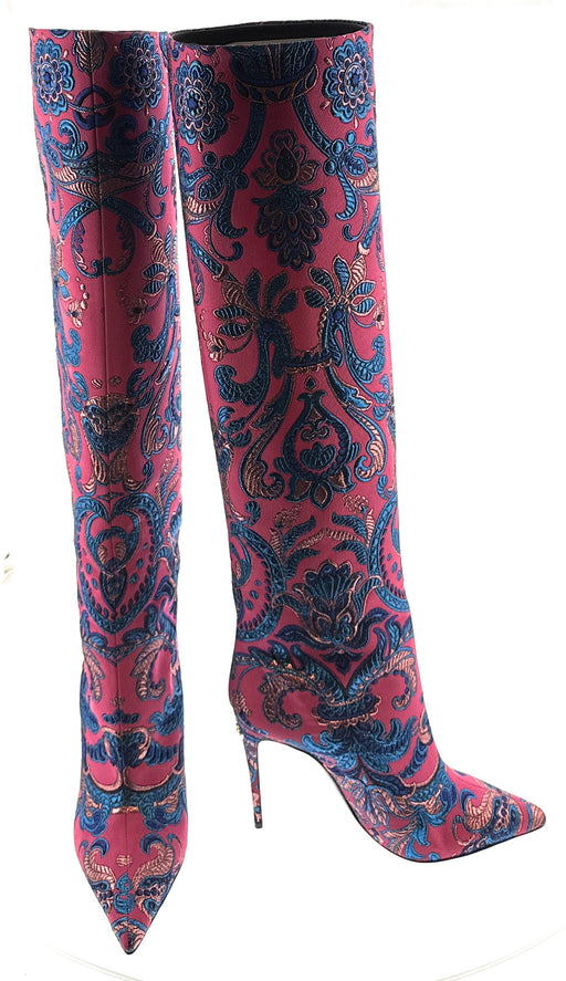 View full detailsDolce & Gabbana Pink & Blue Brocade Stiletto Boots