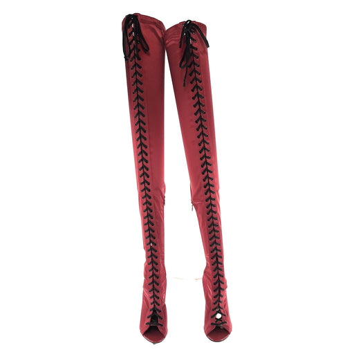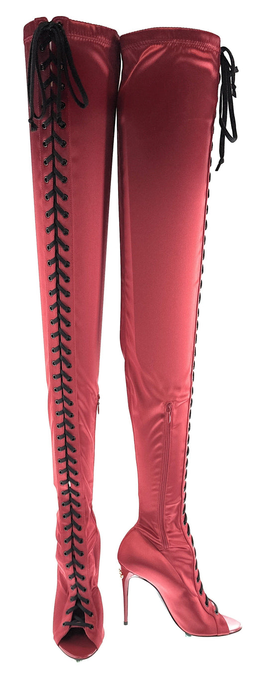 Dolce & Gabbana Red Satin Lace-Up Thigh-High Peep-Toe Boots -EU41