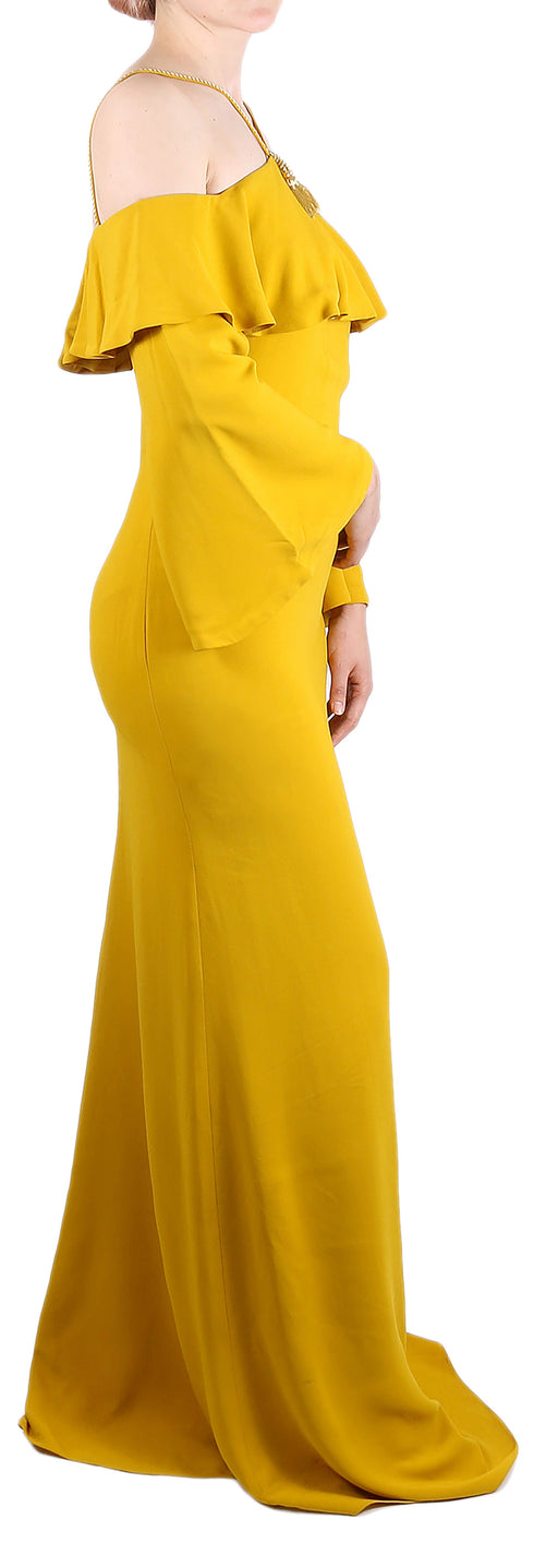 View full detailsRoberto Cavalli Golden Yellow Off-Shoulder Maxi Dress with Open Back