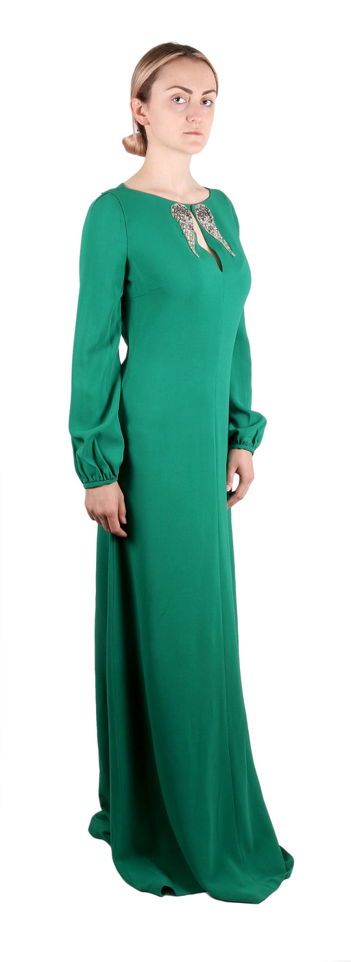 View full detailsRoberto Cavalli Emerald Green Wing Detailed Keyhole Dress Gown