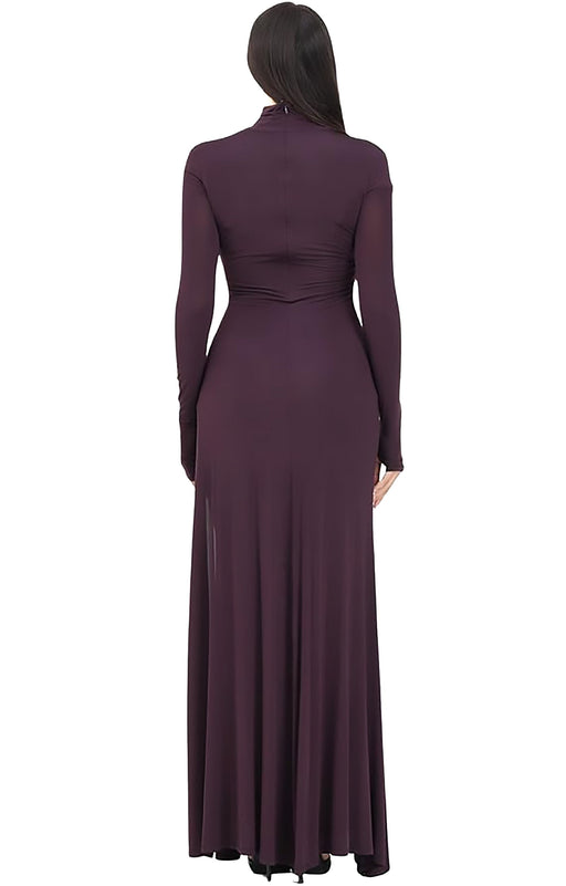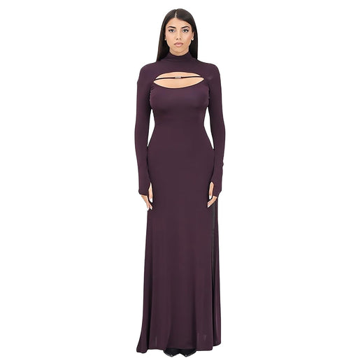 Exude elegance with an edge in this figure-flattering plum maxi dress. Designed with a high neckline and bold front cut-out detail, this dress merg...