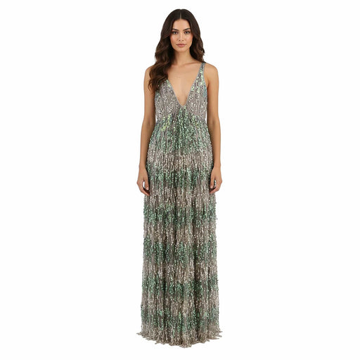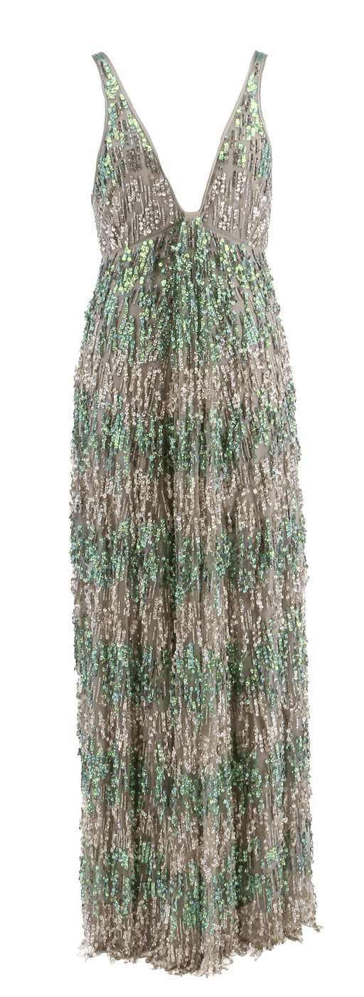 View full detailsEmporio Armani Grey and Green Sequin Embellished Deep-V Silk Evening Gown