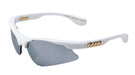 Unleash bold, futuristic style with these white wraparound shield sunglasseswhere sleek sport design meets high-fashion edge. Featuring a sculpted white frame, rimless mirrored lenses, and gold-tone hardware detailing, these performance-inspired shades are perfect for making a powerful visual statement. Lightweight yet durable, the aerodynamic silhouette offers both comfort and impact, ideal for outdoor adventures or fashion-forward city wear.