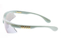 Channel a sleek, futuristic vibe with these green shield sunglasseswhere minimalist sport aesthetics meet luxury detailing. Designed with a streamlined wraparound frame in a unique sage green tone, these sunglasses feature high-gloss silver mirrored lenses and elegant gold-tone accents, creating a striking contrast of modern utility and refined style.