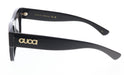 Acetate styles with a bi layered color effect which guarantee a cool look and feel. Squared shape. Gucci lettering logo placed under the laque of the construction. Commercial yet cool color palette featuring at least two color combinations.