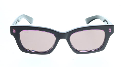 Acetate styles with a bi layered color effect which guarantee a cool look and feel. Oversize squared cat-eye. Gucci lettering logo placed under the...