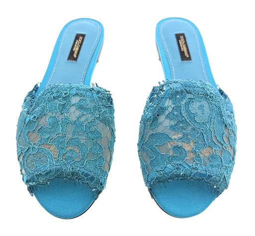 View full detailsDolce & Gabbana Turquoise Lace Flat Slides – Sheer Floral Mesh Slip-Ons-38