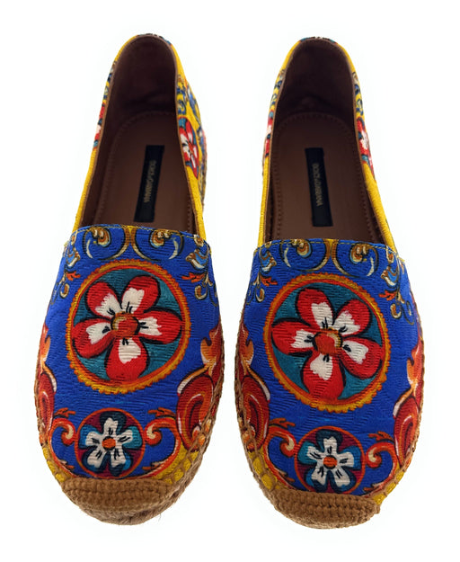 Step into sunshine with these vibrant Dolce & Gabbana espadrilles, bursting with Sicilian-inspired floral and tile motifs. These slip-ons combi...