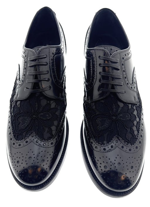 A refined blend of classic elegance and modern luxury, these Dolce & Gabbana Oxford brogue shoes feature intricate black lace detailing over pr...