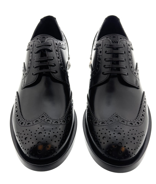 Classic Italian craftsmanship meets bold luxury in these Dolce & Gabbana Oxford brogue shoes, featuring a signature DG logo and metal stud embe...