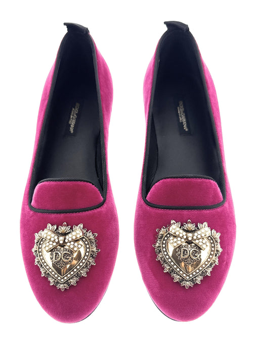 Dolce & Gabbana Women's Burgundy Velvet Loafers with Sacred Heart Embellishment-EU36