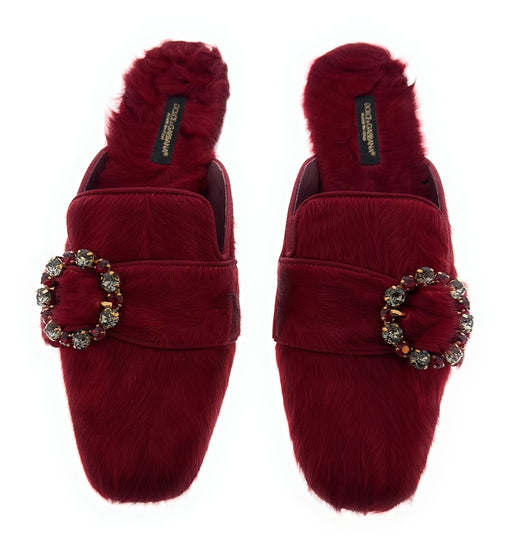 View full detailsDolce & Gabbana Red Suede Fuzzy Embellished Mules-37