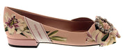 Dolce & Gabbana Pink Floral Satin Crystal Embellished Ballet Flats-EU35
