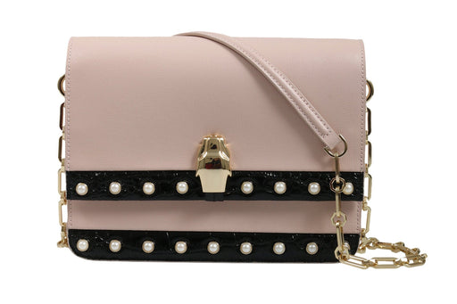 This Cavalli Class By Roberto Cavalli shoulder bag is meticulously crafted using premium materials and features pearl stud detailing on white leath...