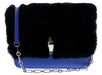 This Cavalli Class By Roberto Cavalli shoulder bag is meticulously crafted using premium materials and features the instantly recognizable tiger head magnetic snap fastener. This stylish bag comes with a unique amalgamation of soft rabbit fur on the flap and has ample interior space for your belongings. This Cavalli Class bag will be a luxurious choice for your accessories portfolio.