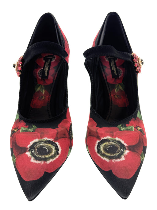 View full detailsDolce & Gabbana Black/Red Poppy Print Jersey Pointed Toe Pumps-EU39.5