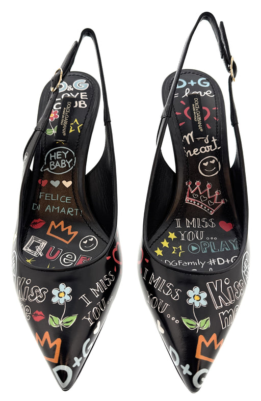 View full detailsDolce & Gabbana Black Classic T-Strap Graffiti Kitten Heels-EU39.5