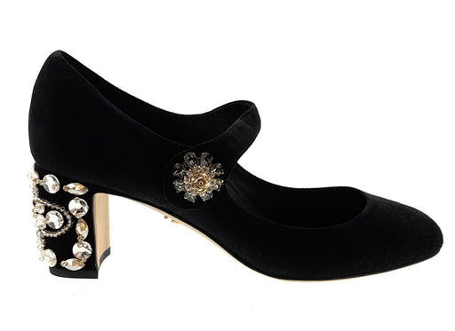 View full detailsDolce & Gabbana Black Bold Velvet Mary Jane Vintage Heels-EU35