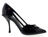 These classic black Dolce & Gabbana pumps feature a glossy patent finish and a delicate bow accent, offering timeless elegance with a touch of feminine charm.