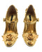 - Shiny gold leather with rose and leaf embellishments at the toe-- Collectors piece
