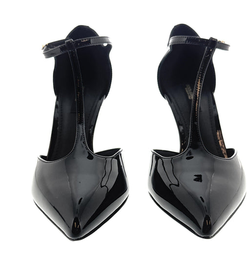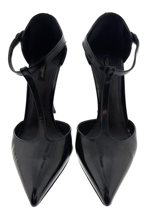 View full detailsDolce & Gabbana Black Glossy Patent T-Strap Heels-EU40