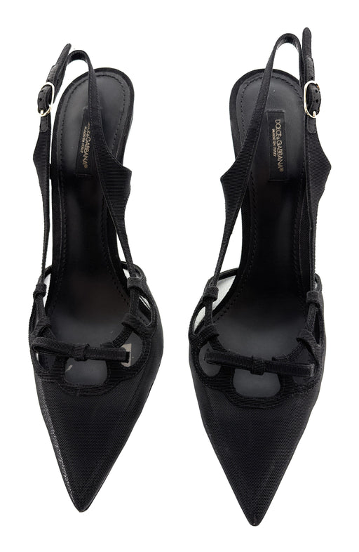 View full detailsDolce & Gabbana Black Mesh Slingback – T-Strap Bow Detail Pointed Pumps-41