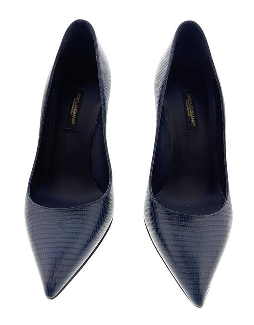 View full detailsDolce & Gabbana Navy Sleek Embossed Leather Classic Pumps-EU35