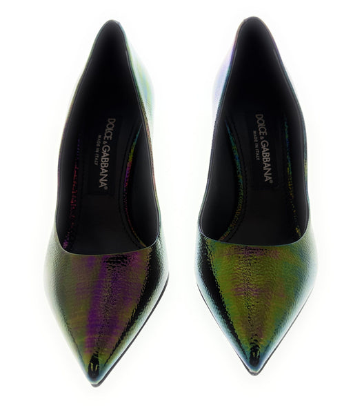 Unleash your bold side with these stunning Dolce & Gabbana iridescent stiletto pumps. The mesmerizing color-shifting finish, paired with a slee...