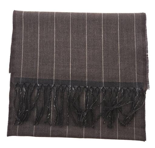 View full detailsLanvin 100% Wool Scarf – Brown Pinstripe, Lightweight Fringed Design