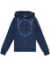 Redefine your off-duty look with this navy blue graphic hoodie featuring bold typography and edgy zipper accents. Crafted from soft cotton fleece, it combines streetwear attitude with luxe comfort, perfect for layering season-round. The standout circular slogan design adds a dynamic touch, while the silver-tone zippers lend a utilitarian edge.