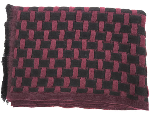 View full detailsLanvin 100% Wool Scarf – Plaid Burgundy and Black, Fringed Winter Wrap