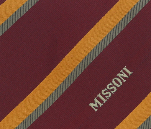 View full detailsMissoni U5035 Burgundy/Orange Regimental 100% Silk Tie