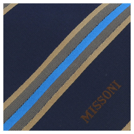 Add instant designer flair to your wardrobe courtesy of this Navy Blue/Gold regimental tie from Missoni. Luxuriously crafted with a 100% silk, it ...