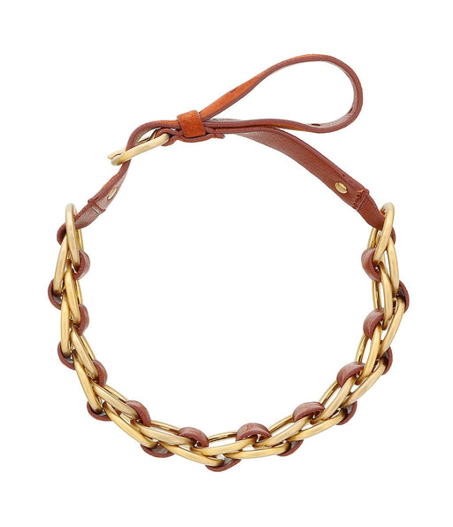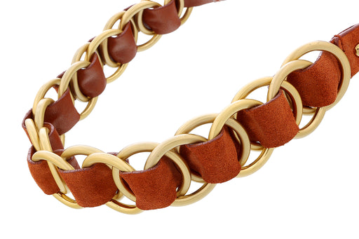View full detailsMiu Miu Burnt Orange Leather Woven Gold Chain Choker Necklace-One Size