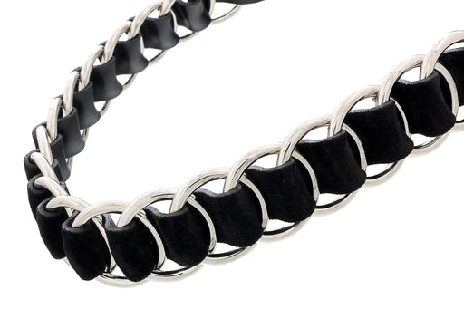 View full detailsMiu Miu Black/Silver Leather Woven Silver Chain Choker Necklace-One Size