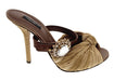 Dolce & Gabbana Brown Raffia Jewelled Stiletto Heel Slides-39