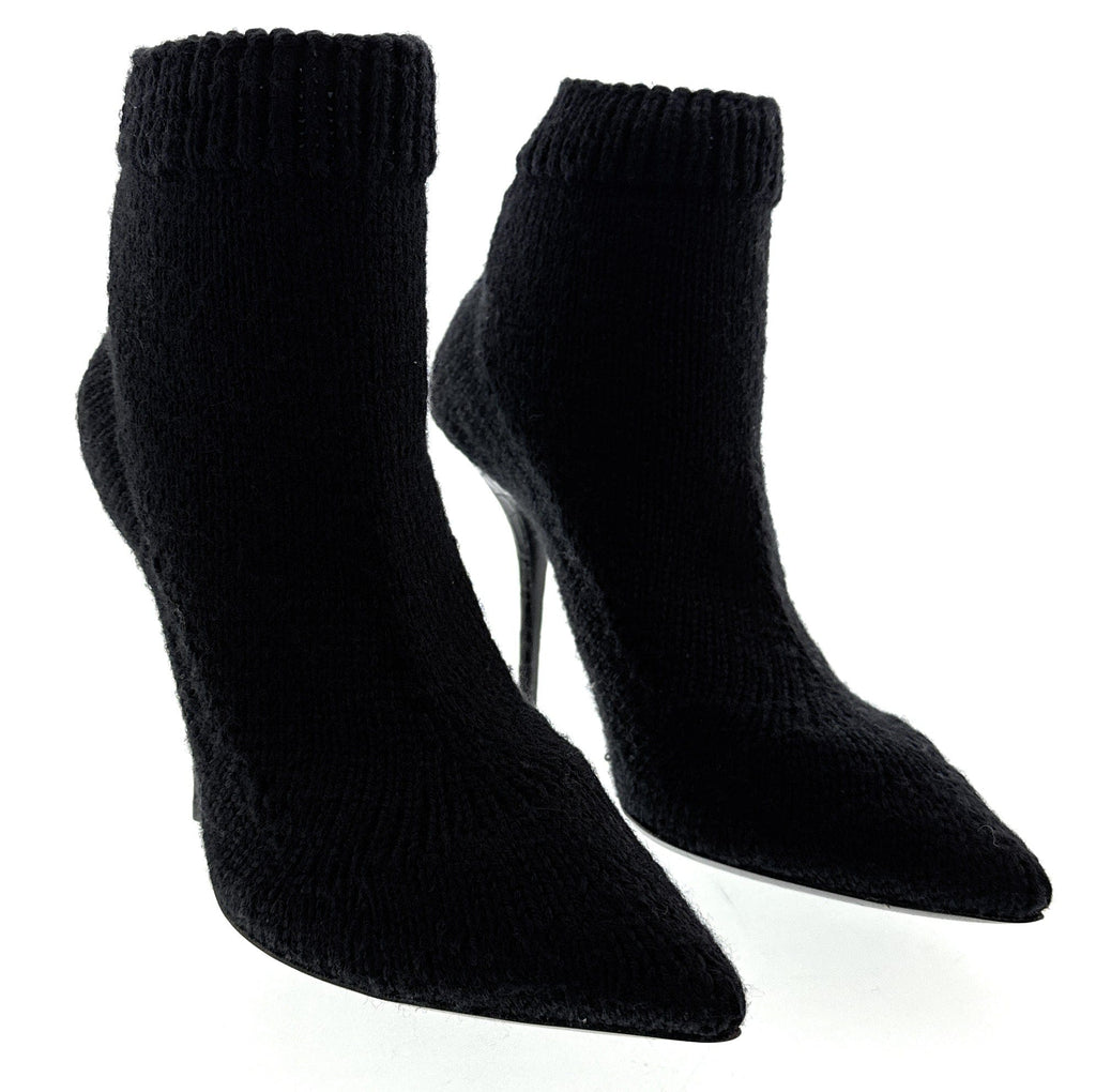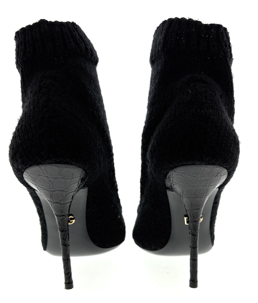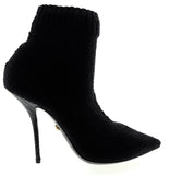 Dolce & Gabbana Black Knit Sock Boots – Pointed Toe Stiletto Ankle Heels-39