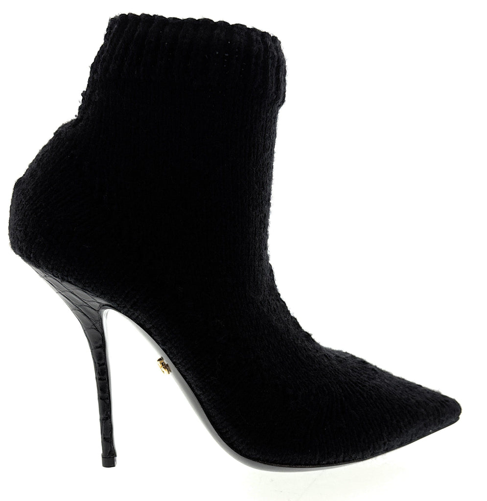 These avant-garde Dolce & Gabbana ankle boots blur the line between cozy and couture. With a snug knit sock construction and razor-sharp pointed toe, they add runway-ready edge to everything from midi skirts to tailored trousers.