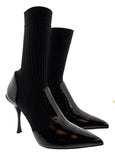 Dolce & Gabbana Black Sock-Style Patent Leather Ankle Boots – Sculpted Heel-39
