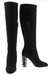 Dolce & Gabbana Black Suede Knee-High Boots with Jeweled Block Heel -EU36