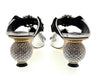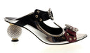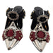 Command attention in these show-stopping Dolce & Gabbana heels, featuring a futuristic silver finish, bold red and black strap accents, sparkling crystal buckles, and a unique pearl-encrusted heel. A true statement piece for couture lovers and collectors alike.