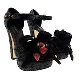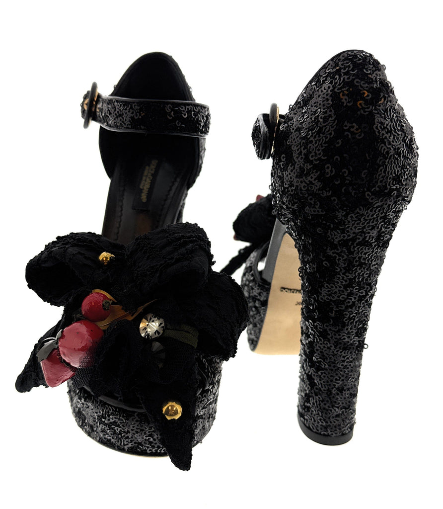 Dolce & Gabbana Women's Black Sequin Strawberry Embellished Platform Heels-EU36.5