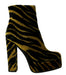 - Platform sole, wide heel, almond toe, all-over zebra-print